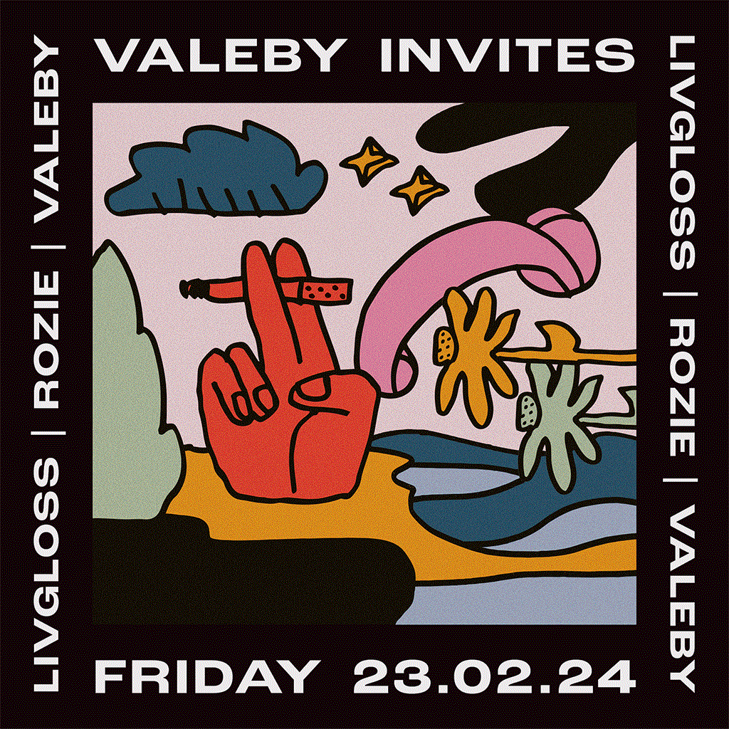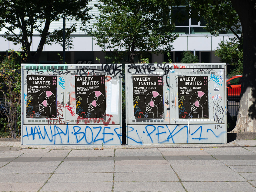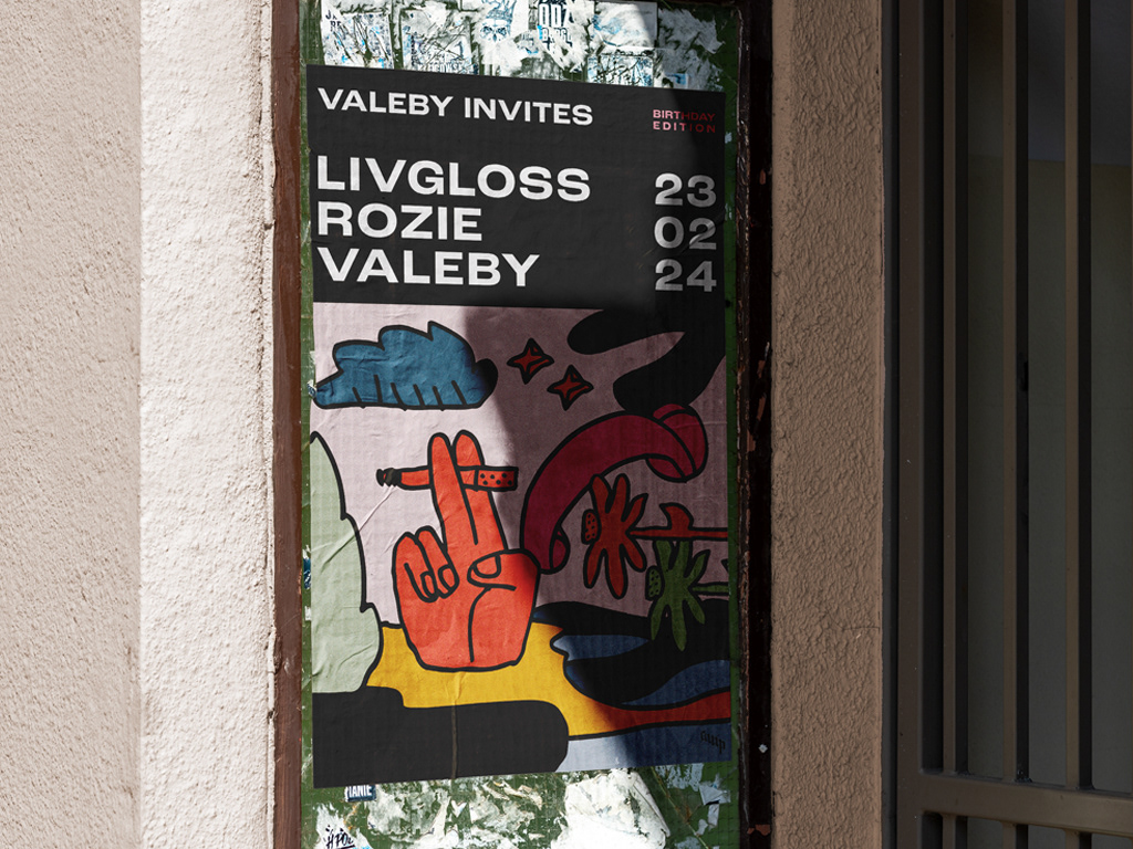 "Valeby Invites" ist eine Partyreihe im amp, kuratiert von DJ und Producer Valeby. Für die wiederkehrende Veranstaltung gab es bisher eine Reihe an illustrativen und grafischen Artworks, die für die gängigen sozialen Medien sowie im öffentlichen Raum genutzt wurden.